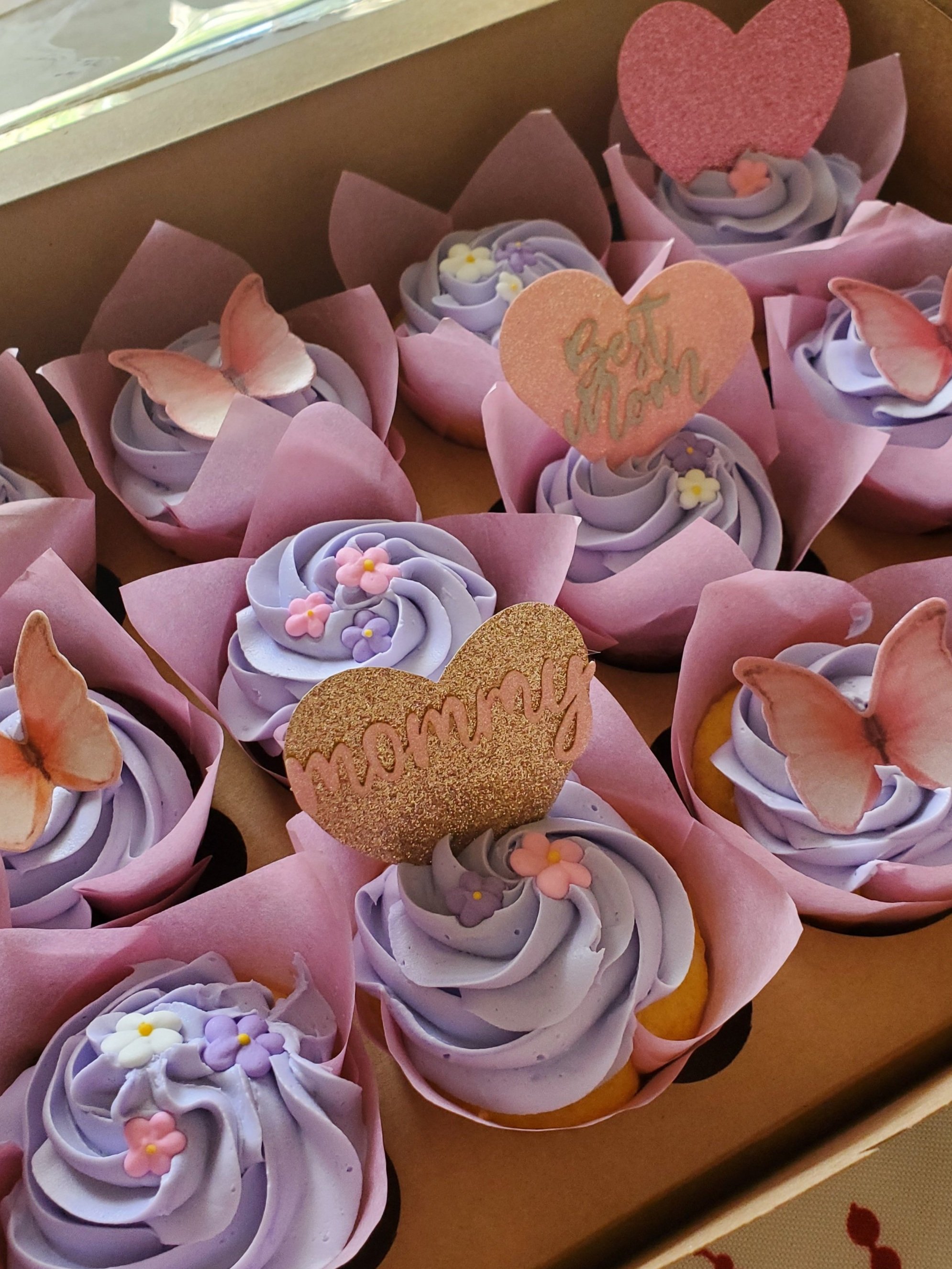 We customized toppings and design for any occasion. Pictured here are some special Mother’s Day cupcakes.